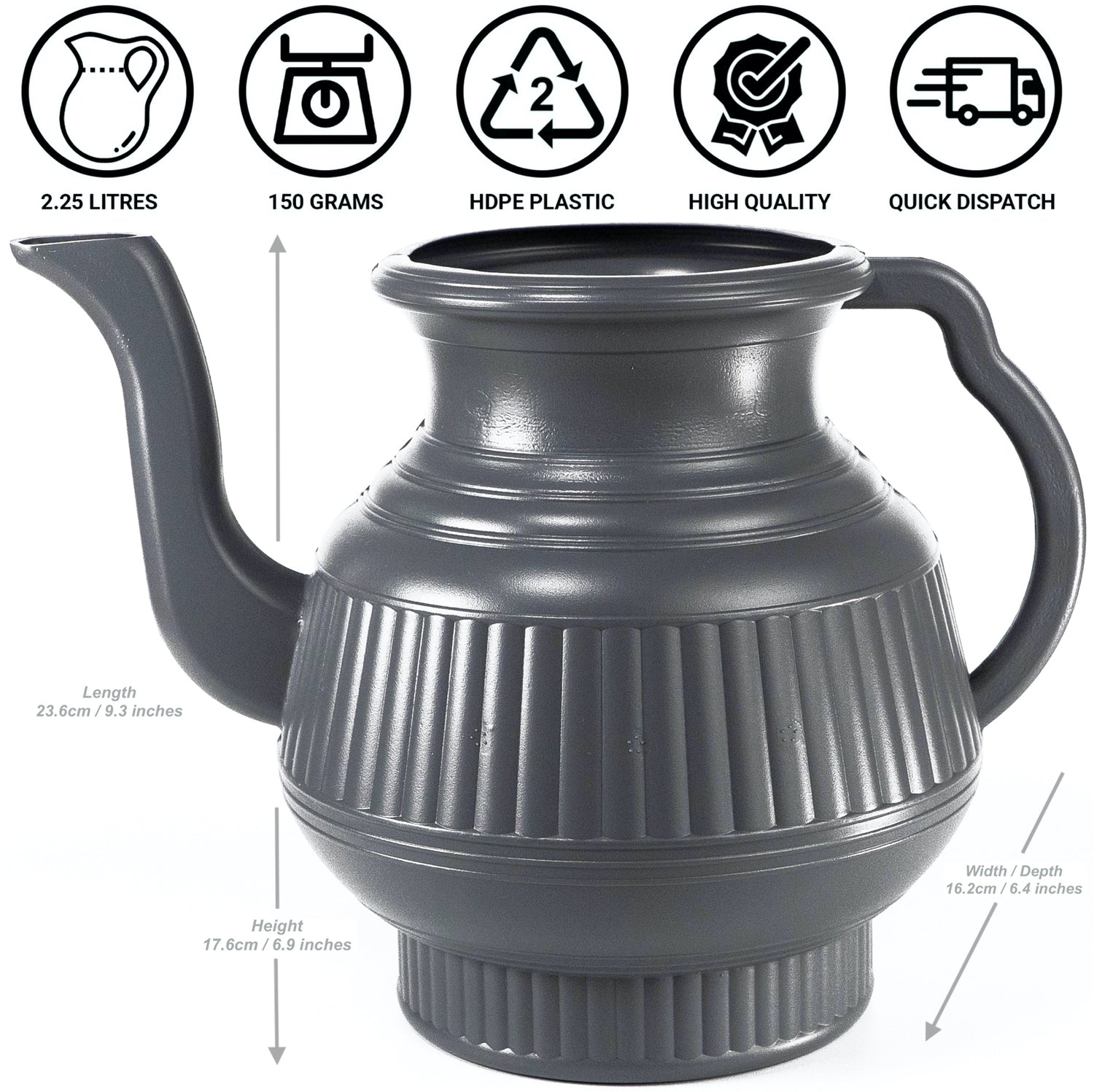 Pair of Gray & Gray Lota | Bodna | Toilet Wash Jug | 2.25 Liters